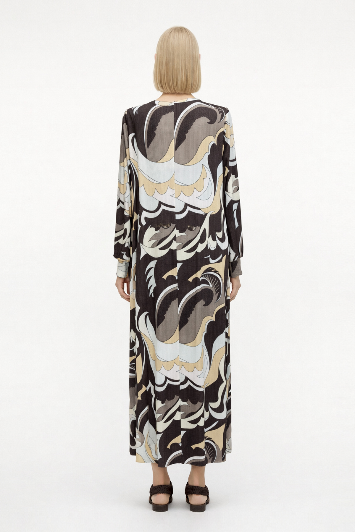FİTİLLİ JAKAR KARIŞIK GEOMETRİ DESENLİ ELBİSE
