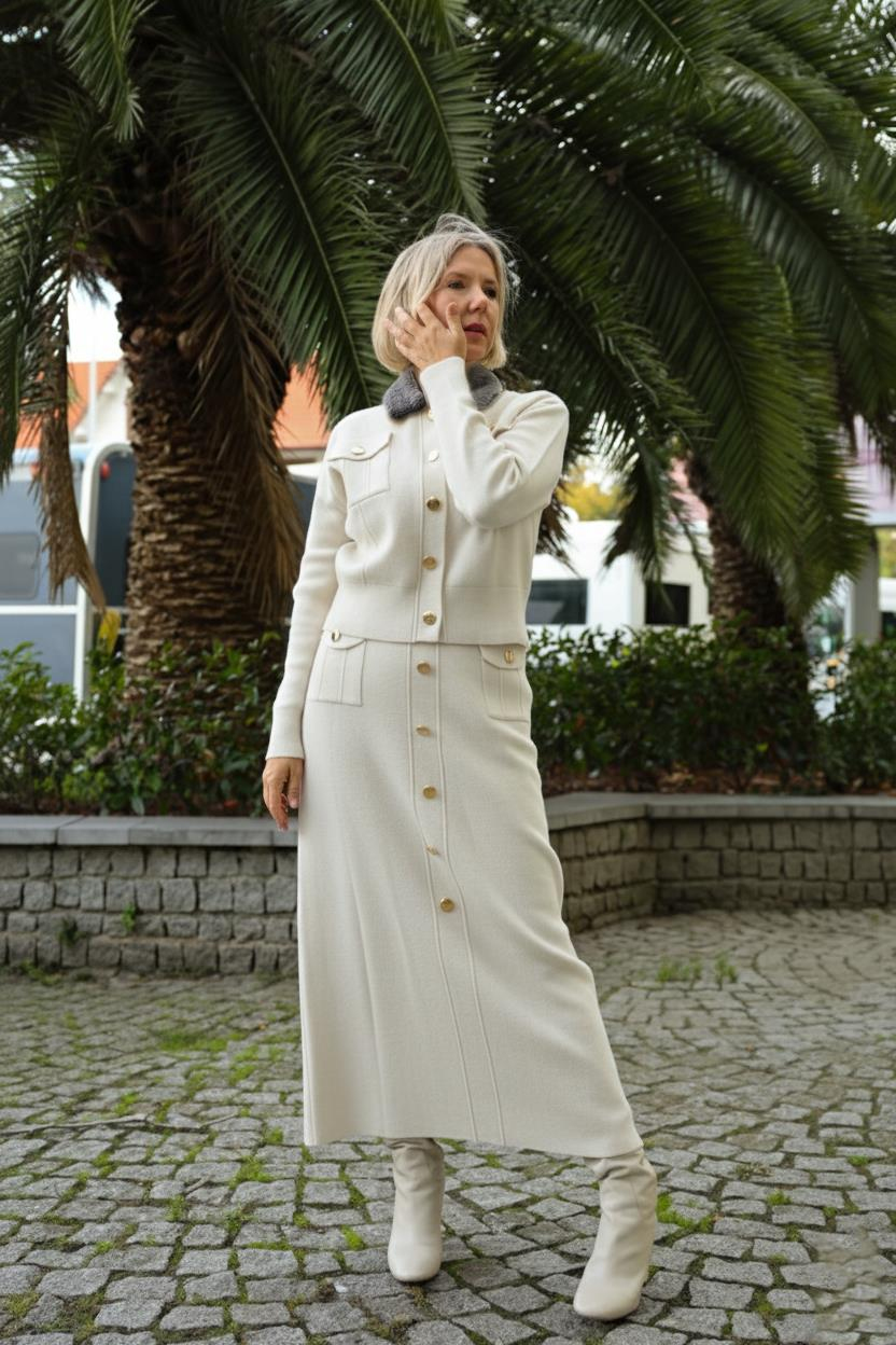 TRİKO 24036 YAKASI KÜRKLÜ HIRKA VE ETEK TAKIM