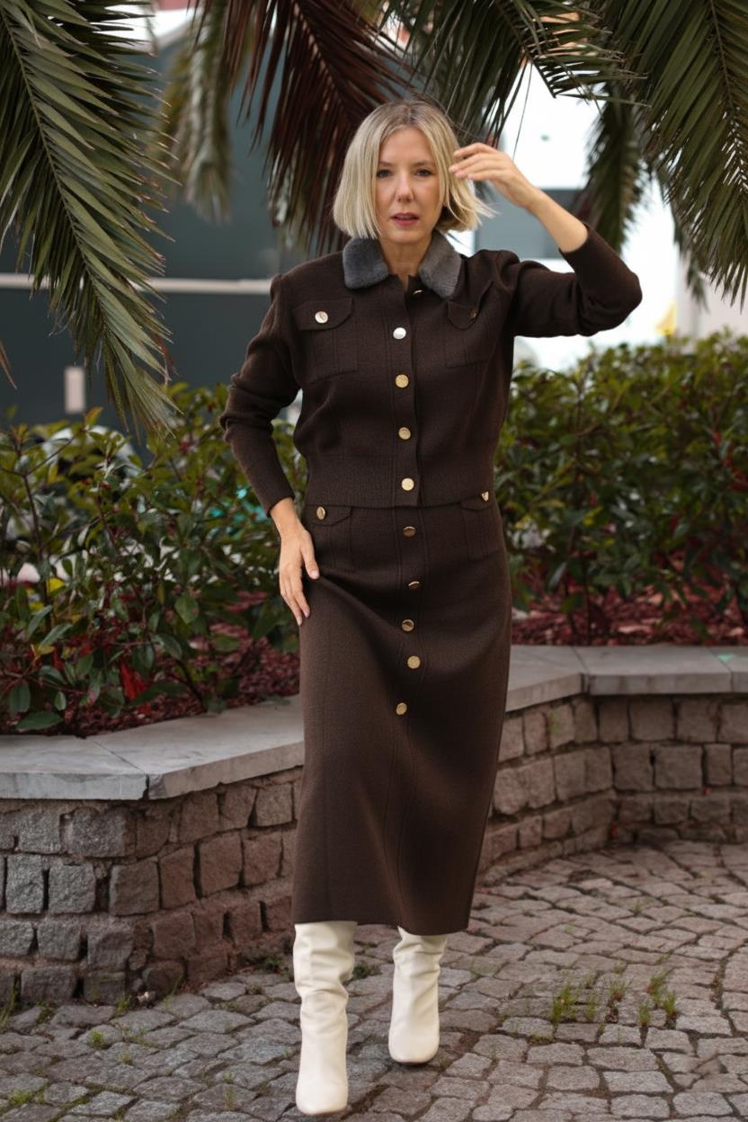 TRİKO 24036 YAKASI KÜRKLÜ HIRKA VE ETEK TAKIM