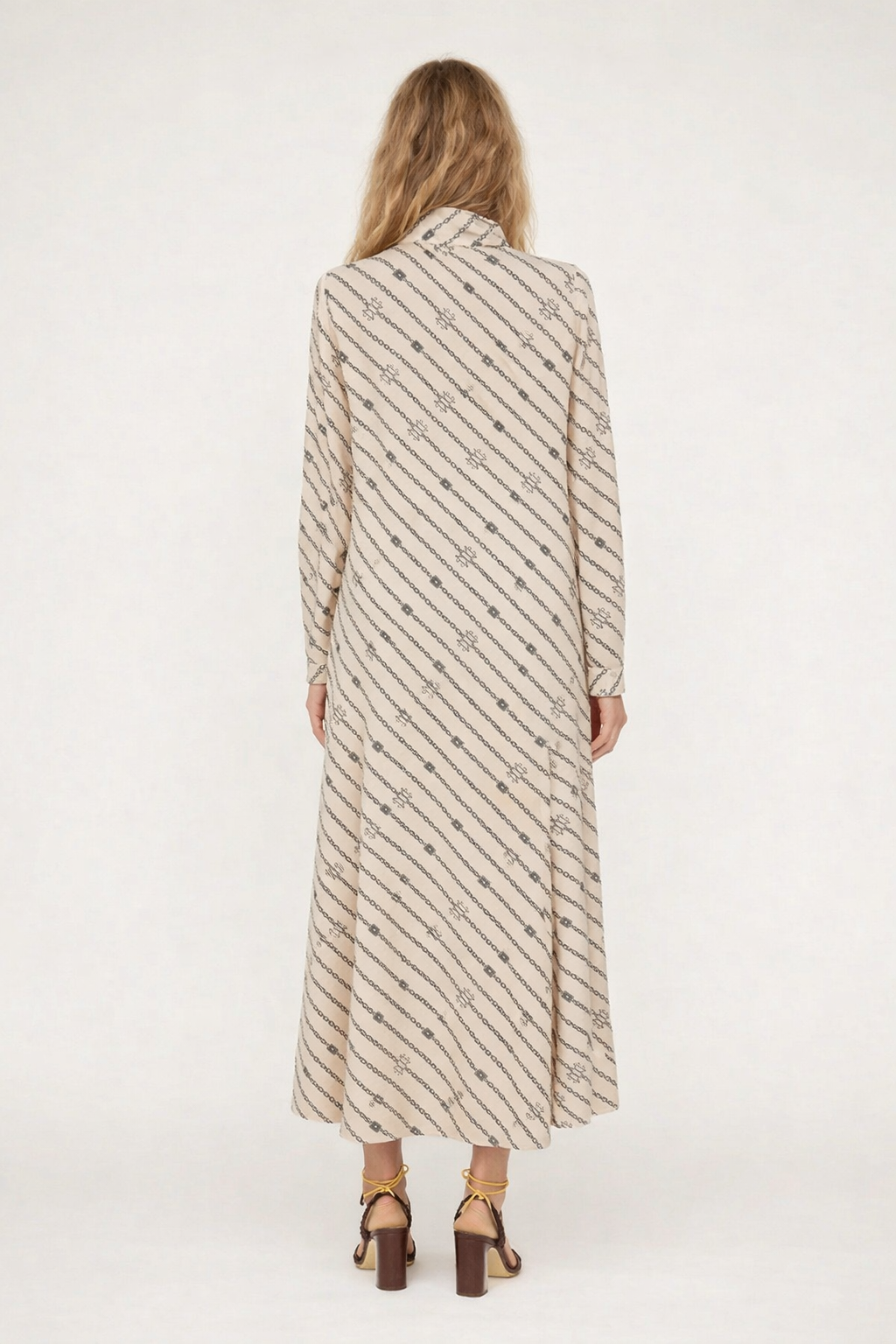 VISCON NOİ LOGOLU VEREV ZİNCİRLİ FULARLI YAKA ELBİSE
