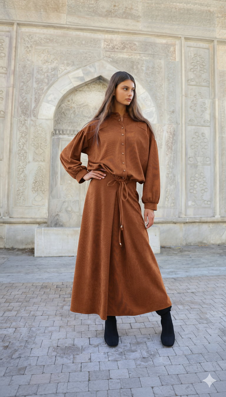 İNCE FİTİLLİ LYCRALI KADİFE ÖNDEN PİLELİ ETEK