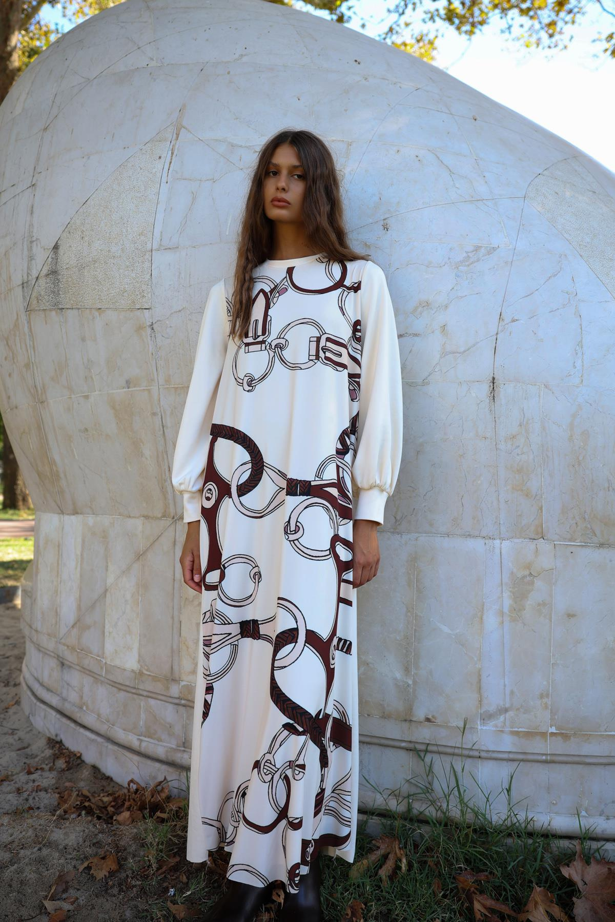KREM RENGİ MAXİ ELBİSE A FORM ÜRÜN BOYU:135CM