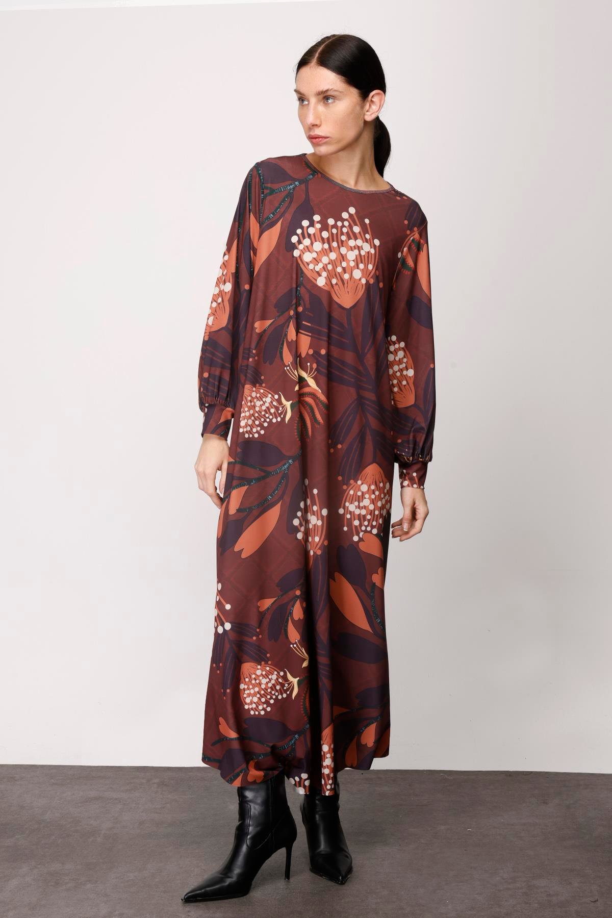 JARSE MODERN NOKTA TOMURCUK ÇİÇEK A FORM ELBİSE