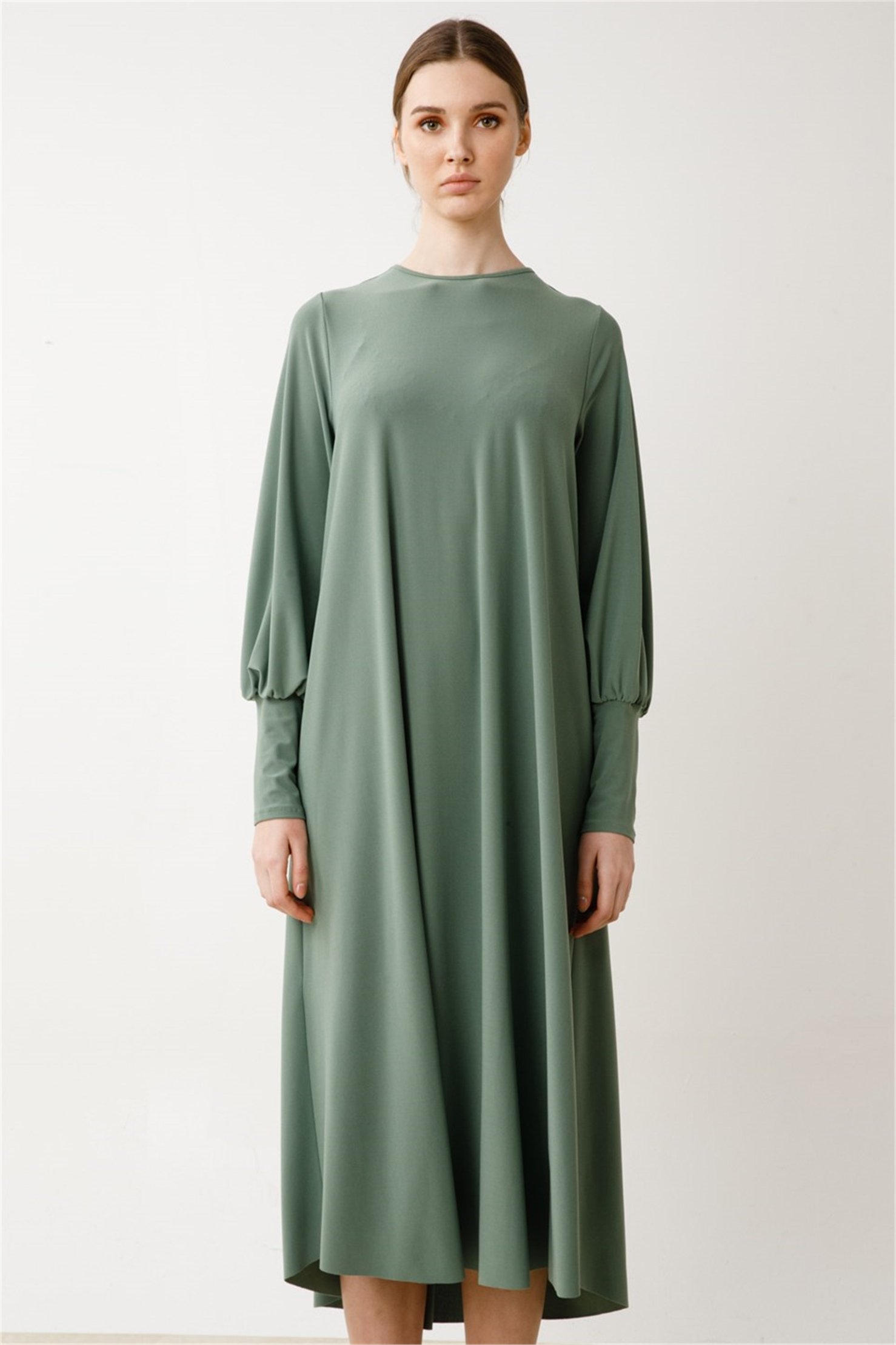 KREP JARSE KOLLARI MANŞETLİ A FORM ELBİSE