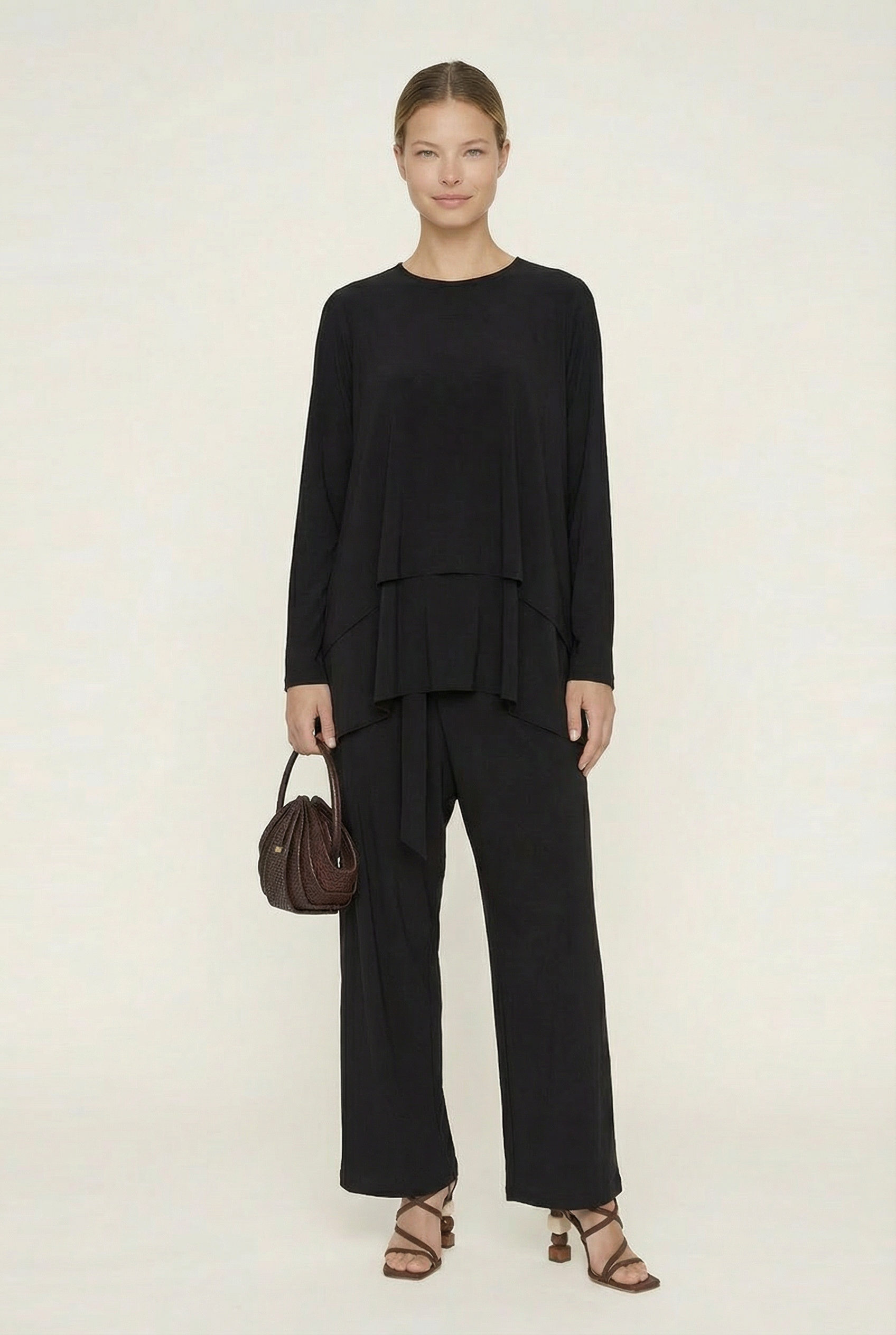 KREP ÖNDEN YIRTMAÇLI ÇİFT KATLI BLUZ