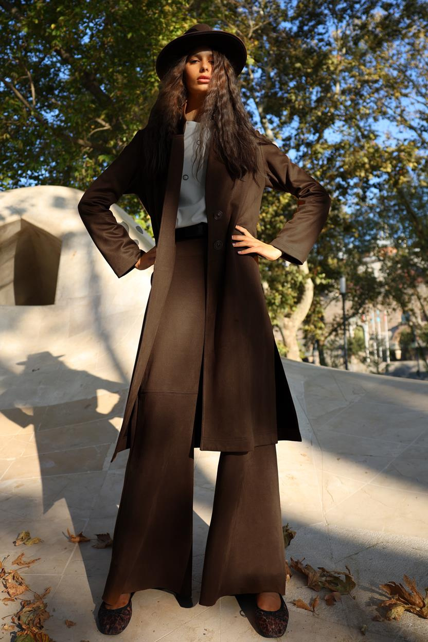SÜET BELDEN KESİKLİ UZUN BLAZER CEKET