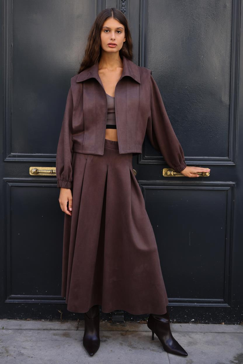 BELİ LASTİKLİ PİLELİ SÜET EFEKTLİ ÖRME ETEK... ÜRÜN BOYU:97CMDİR.
