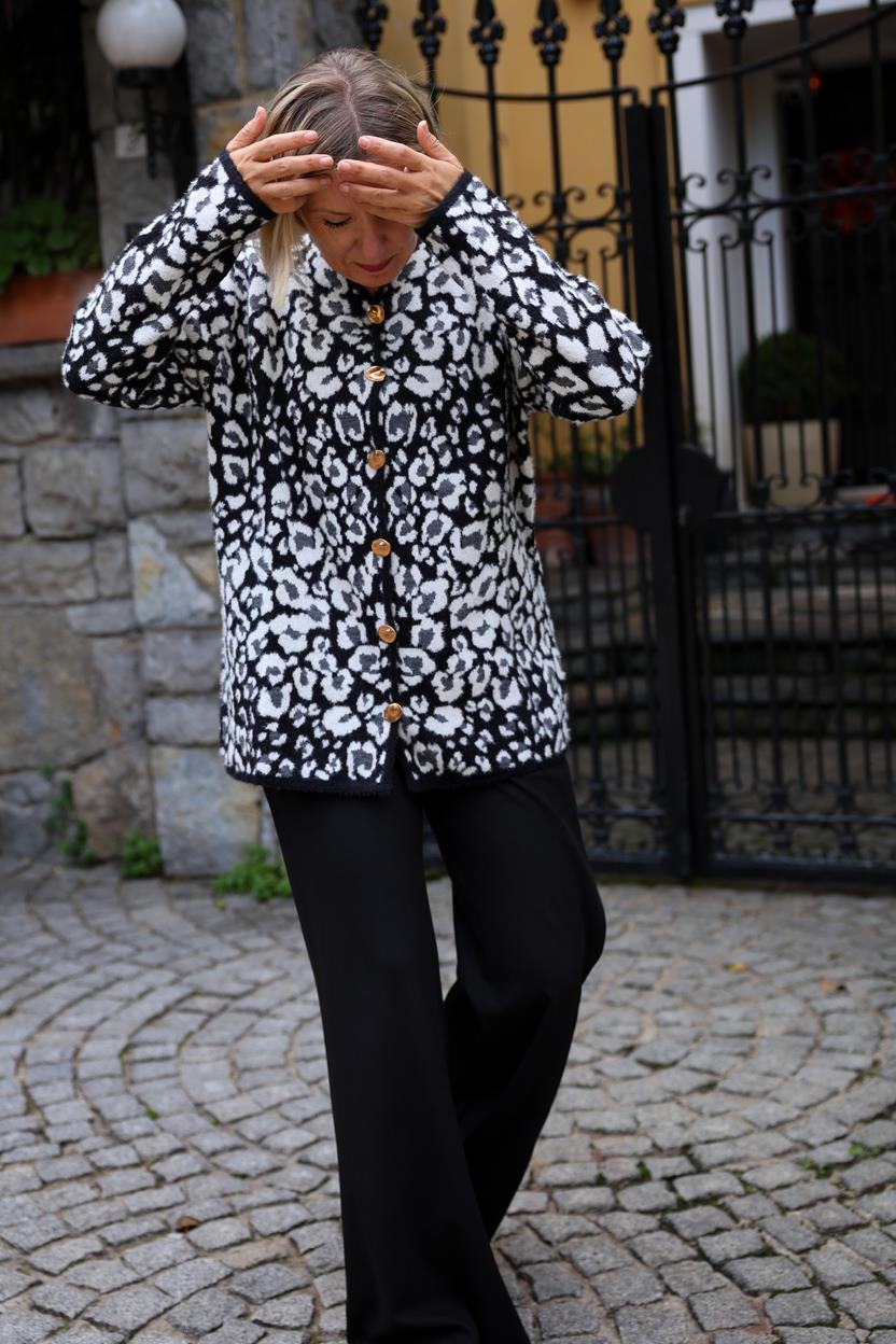 TRİKO 24064 ÇİFT RENKLİ LEOPAR DESENLİ HIRKA (65715)