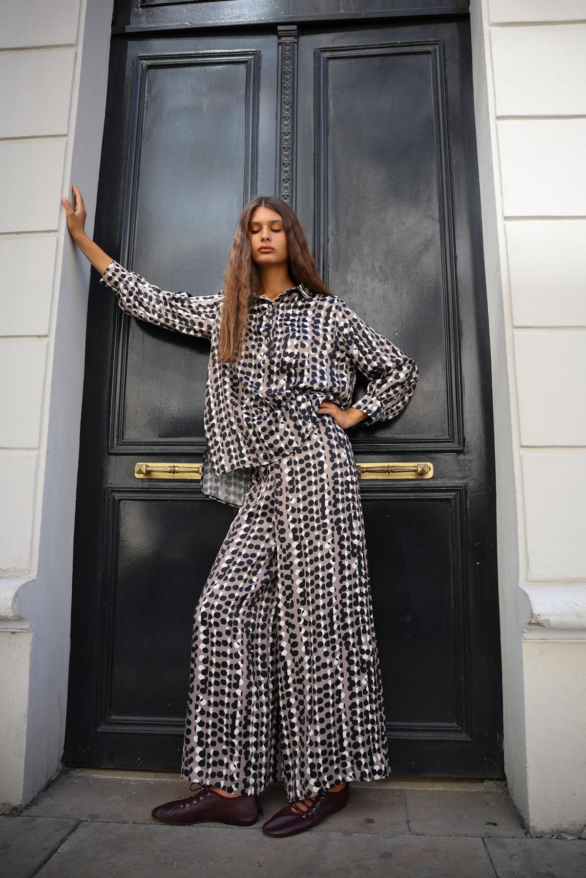 VİSCON RETRO DESENLİ BOL PAÇA PANTOLON